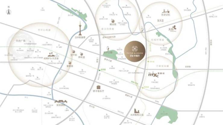 成都的二环,宛如这座城市的历史脉络,承载着深厚的文化底蕴。它在盛唐时期就以“扬一益二”的辉煌闻名于世,千年来,又在市井烟火的熏陶下,凝聚出最具成都特色的生活气息。这条黄金环线,无疑是成都珍贵记忆资产的汇聚之地。深业泰樾府所处位置得天独厚,贯通一环与二环,紧邻东门大桥、杉板桥等热门区域,妥妥位于二环内核心片区。而且,项目的两端分别有339和万象城这两大地标性综合体坐镇,进一步提升了区域的价值与影响力。周边配套: